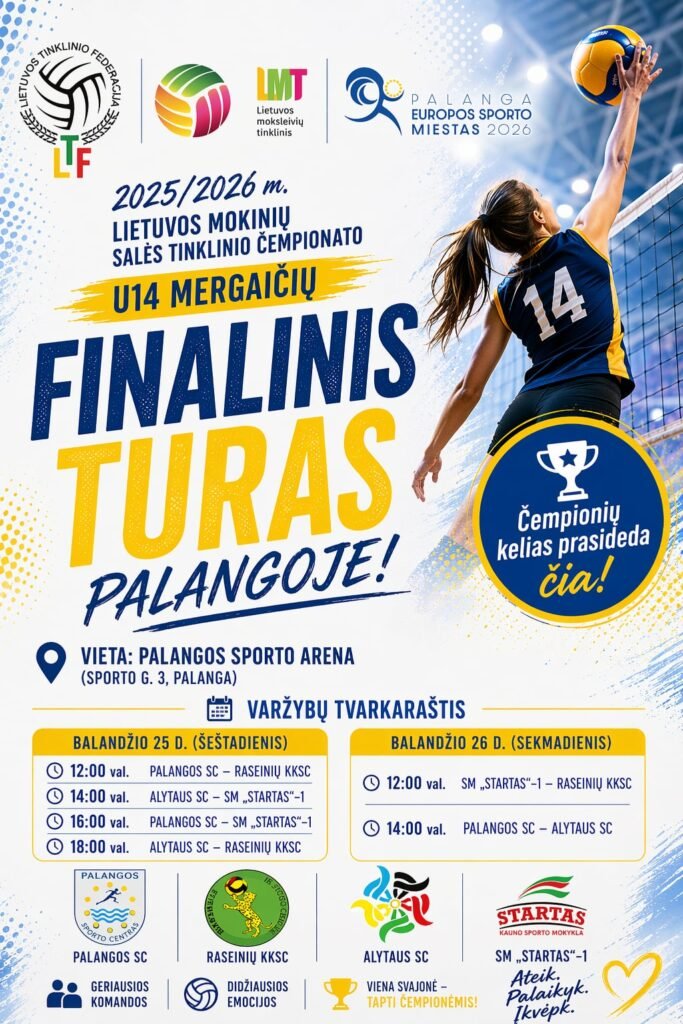Renginiai NAUJIENOS U14 Lietuvos mokinių tinklinio čempionato FINALINIS TURAS PALANGOJE Daugiau Palangos plaukikų “AČIŪ” Andriui Daugiau Palangos miesto vyrų tinklinio pirmenybės “Gintarinė taurė” Daugiau “Palangos sprintas” Daugiau Krepšinio šventė Kretingoje Daugiau Plaukikų pasiekimai atvirame Klaipėdos miesto čempionate Daugiau Pusmaratonis Pralenk Žirgą Daugiau Kovo 11 -ą – šventinis krepšinis Daugiau Sidabrinis tinklininkių žygis Taline! Daugiau Plaukikų startai Palangos miesto plaukimo pirmenybėse Daugiau SPORTO ŠAKOS Badmintonas Plaukimas Krepšinis Aerobinė gimnastika Futbolas Lengvoji atletika Boksas Dziudo Tinklinis NAMŲ VARŽyBŲ KALENDORIUS 2026 m. planuojamos varžybos