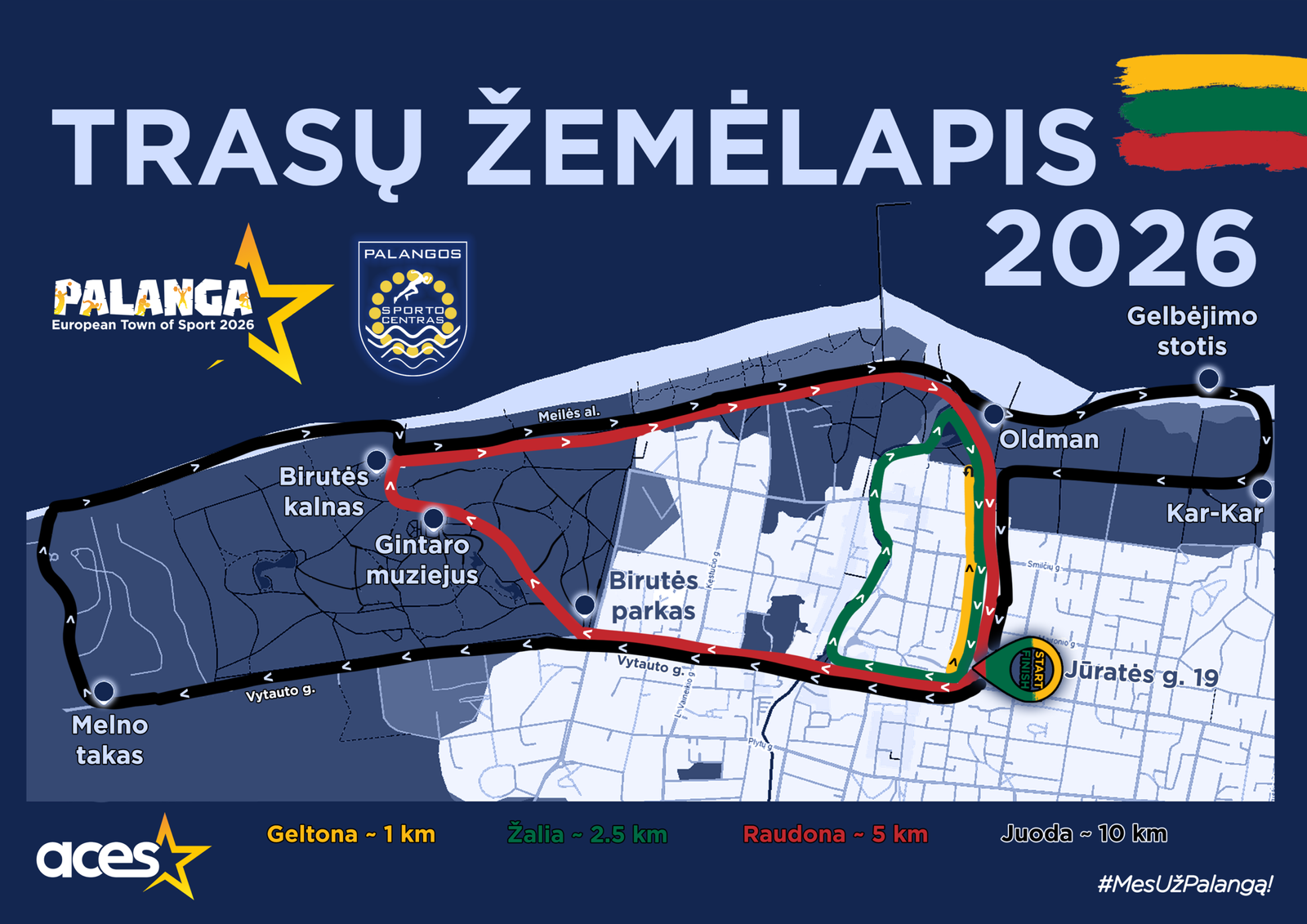 Vasario 16-osios bėgimas Vasario 16-osios bėgimai Vasario 13 bėgimas Šventojoje dėl didelio vaikų sergamumo bus perkeltas Vasario 16 bėgimas Palangoje NUOSTATAI REGISTRACIJA Parsisiųsk .GPX trasą į savo išmanųjį įrenginį Geltona ~ 1 km Žalia ~ 2.5 km Raudona ~ 5 km Juoda ~ 10 km